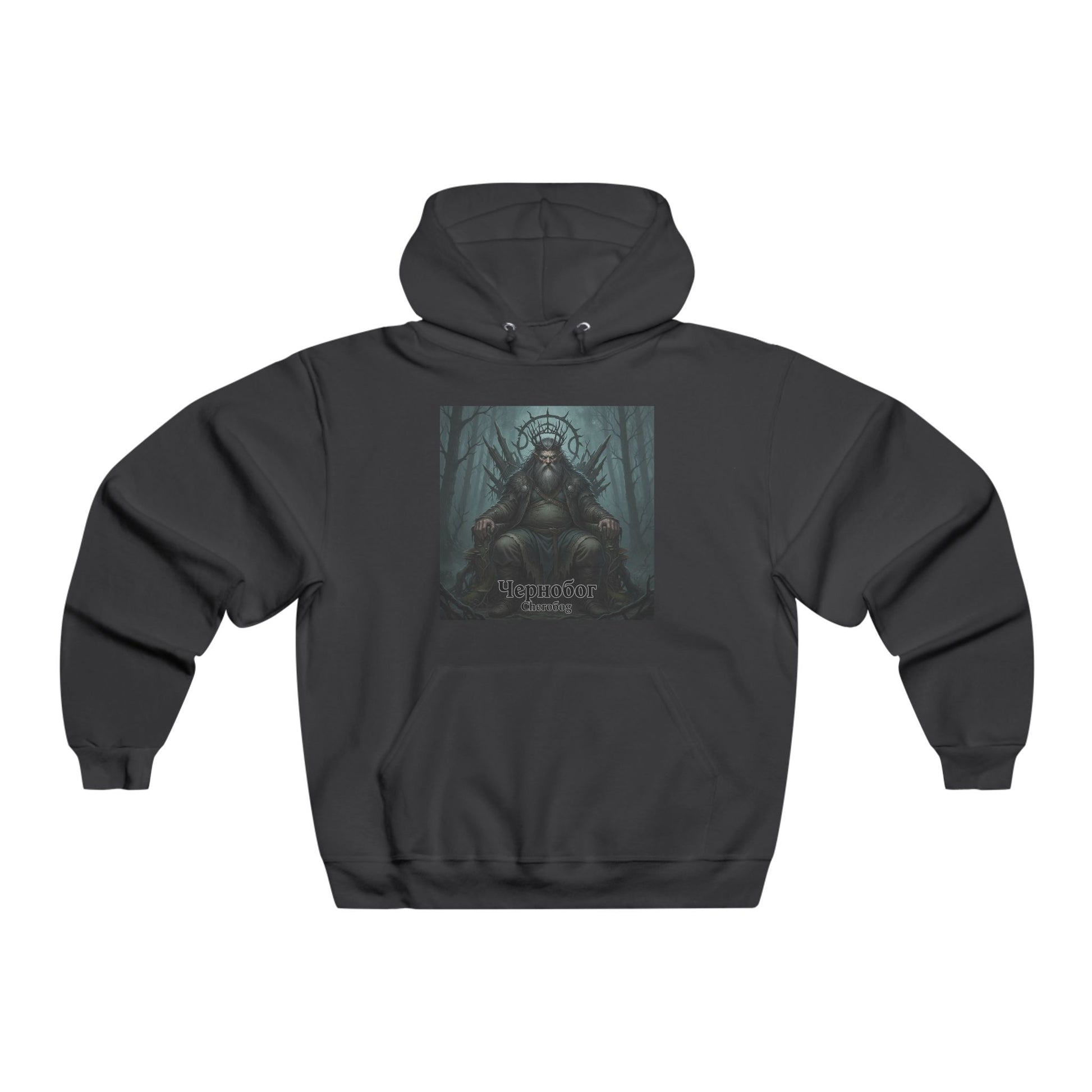 This hoodie features Chernobog, the ancient god of darkness and fate, seated on his throne in a misty, haunted forest. With his wild beard, tangled crown, and that “don’t test me” stare, it’s the perfect layer for folklore fans, metalheads, and anyone who loves a little grimdark myth in their wardrobe.