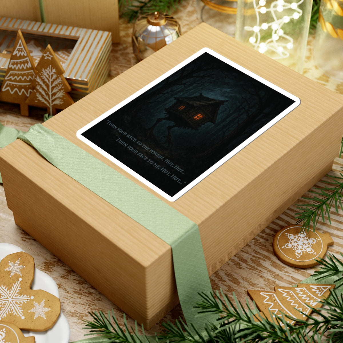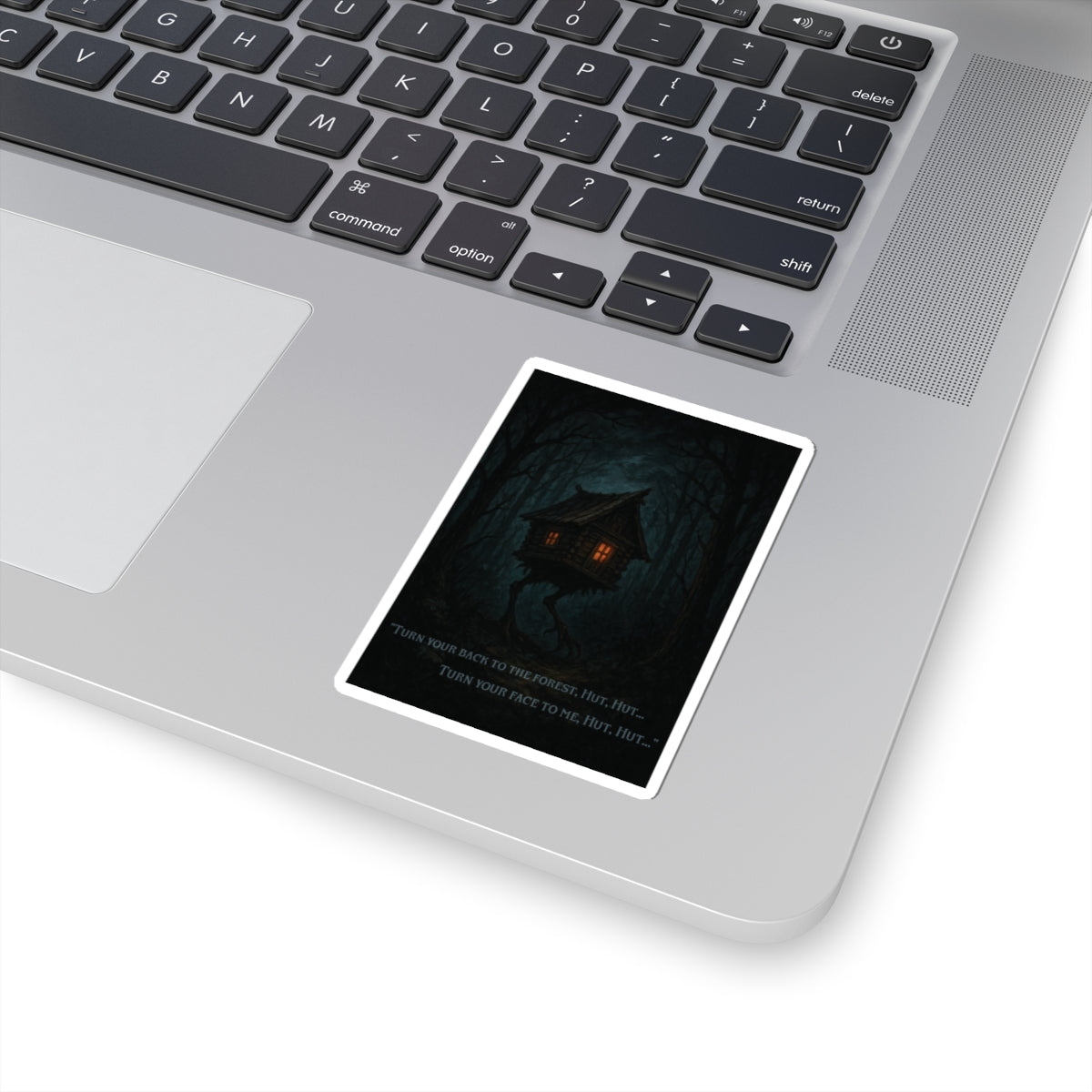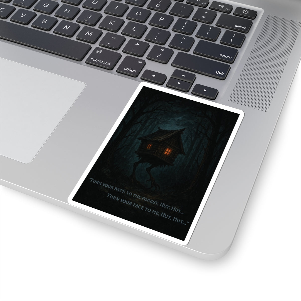 This “Hut Hut” sticker brings Baba Yaga’s wandering hut—perched on long, clawed legs—right into your everyday gear. The dark, tangled forest and warm window glow feel like the moment just before you speak the old words: “Turn your back to the forest, hut, hut… turn your face to me…” Perfect for folklore geeks, witchy artists, and horror fans who like their stickers a little ominous.
