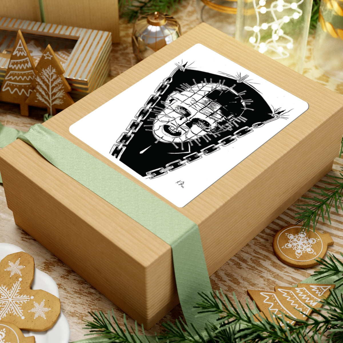 Bring a little cenobite energy to your stuff with this Hellraiser Pinhead portrait sticker. Featuring a hand-drawn illustration of Pinhead, this kiss-cut sticker gives off a spooky, eerie vibe that horror fans will love.